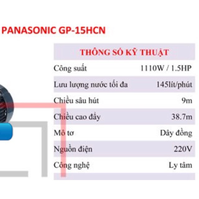 Giới thiệu Máy bơm nước đẩy cao công suất lớn panasonic GP-15HCN1SVN (1110w)