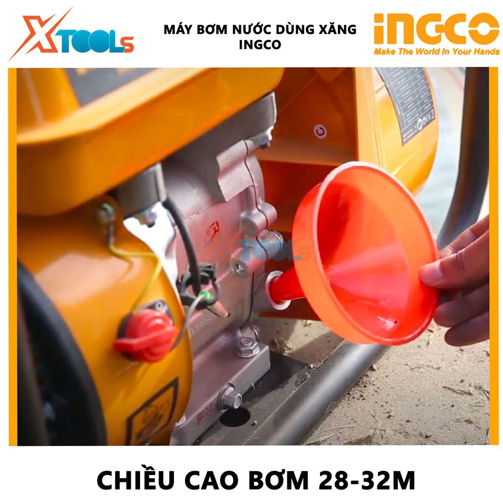 Máy bơm nước dùng xăng INGCO GWP302 | Máy bơm nước Đường kính ống hút và xả: 50mm(2")-80mm(3'') Chiều cao bơm tối đa