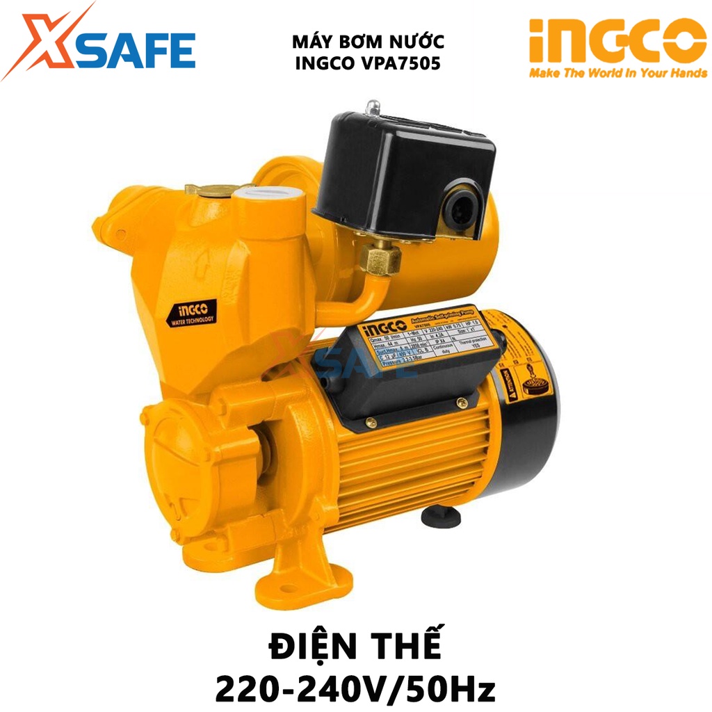 Giới thiệu Máy bơm nước INGCO VPA7505 Máy bơm tăng áp công suất 750W(1.0HP), chiều cao bơm 44m, mô tơ dây đồng - [XSAFE]