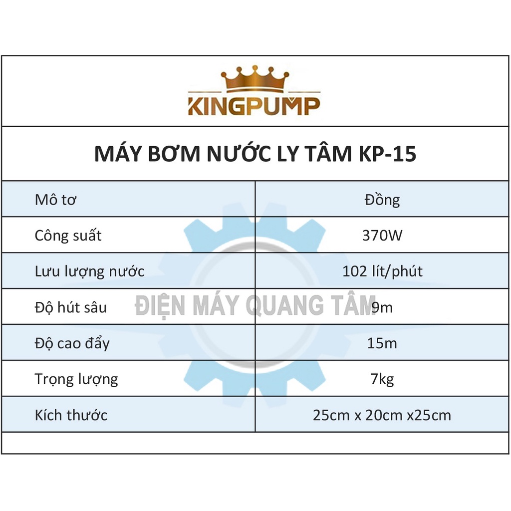 ✅ Máy Bơm Nước Ly Tâm Gia Đình KINGPUMP KP-15- Mô tơ: 100% lõi đồng