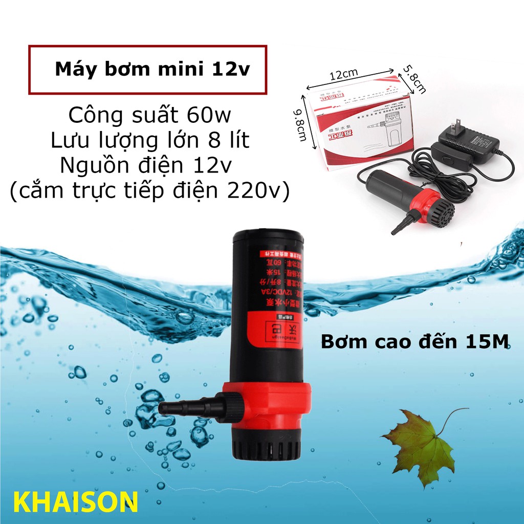 Máy bơm nước mini 12v 15M 60W dùng cho máy cắt rãnh tường, thay nước bể cá (màu đỏ)