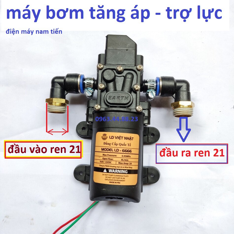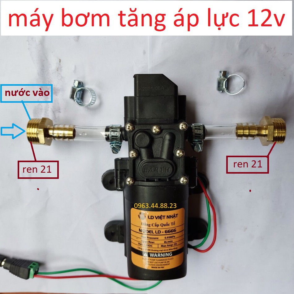 Máy bơm mini 12v + 2 đầu chuyển ren 21mm + nguồn 12v 5a