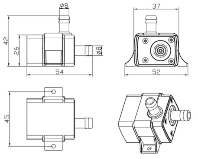 Kích thước bơm: 54x52x42mm