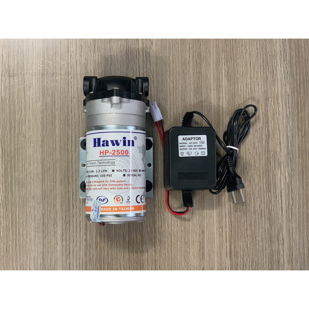 Máy bơm phun sương 24V có khả năng chạy đến 30 đầu béc phun sương số 1 hoặc số 2.
