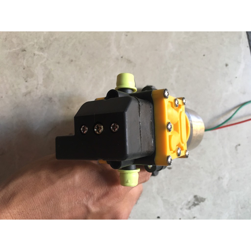 12V Điện áp: DC 12V. Sử dụng rộng rãi trong làm vườn, làm sạch xe, ô tô, làm sạch thảm, làm sạch nền. Dễ dàng và thuận tiện để sử dụng. Thiết kế nhỏ gọn An toàn khi sử dụng Dùng làm máy vệ sinh máy lạnh gia đình. Dùng làm máy bơm vệ sinh xe, rửa xe. Dùng làm , tưới cây. Dùng làm máy bơm phun sương, tưới lan,… Dùng làm máy bơm nước vào bể chứa. Dùng làm máy bơm trợ lực máy giặt. Dùng làm bơm làm mát hệ thống. Điện áp : 12V Công xuất : 60W – 2A Áp lực : 0,55 - 8kg (0,55Mpa - 0.8 Mpa) Lưu lượng : 3,5L - 5L/phút Ống vào ra : 12 mm Ống dây cho phép tối đa: 90 mét. Sản phẩm được kiểm tra kỹ lưỡng và được đóng gói cẩn thận trước khi giao đến tay khách hàng để hạn chế thấp nhất sự cố hư hỏng, giảm chi phí bảo hành nhằm mang lại sự hài lòng cho khách