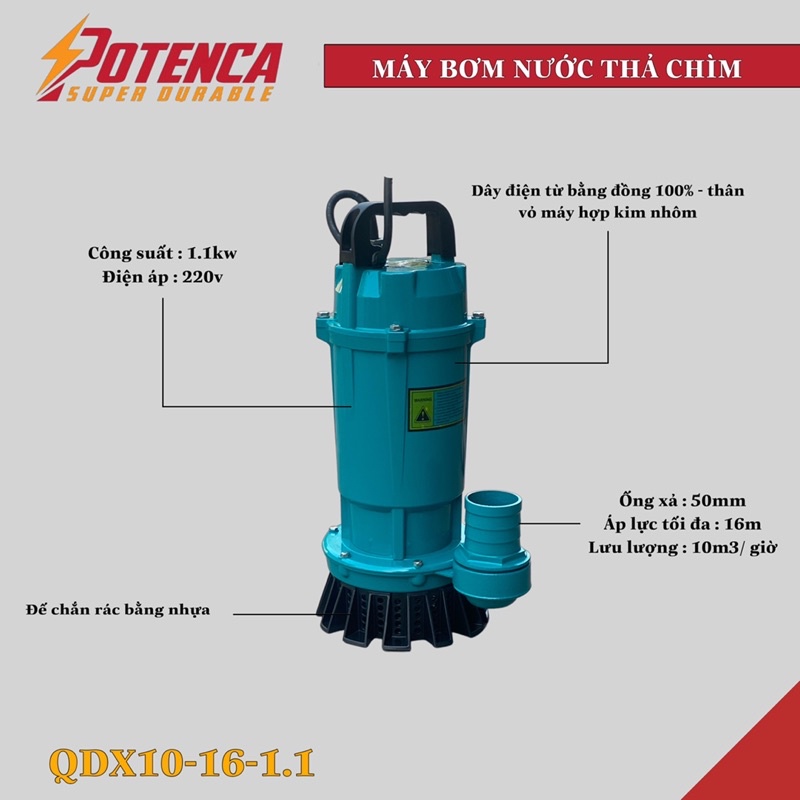 Máy bơm nước thả chìm 1,1kw potenca ( QDX10-16-1.1 )