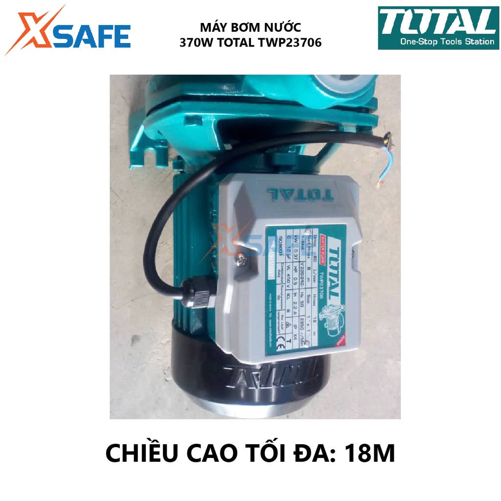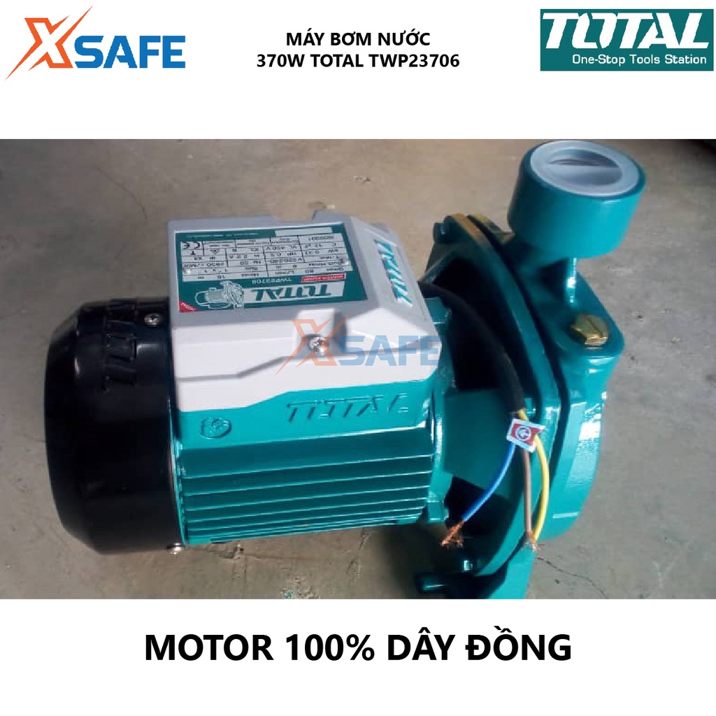 Máy bơm nước TOTAL TWP23706 Máy bơm điện 370W(0.5HP) mô tơ dây đồng, chiều cao bơm tối đa 18m, cánh quạt đồng thau