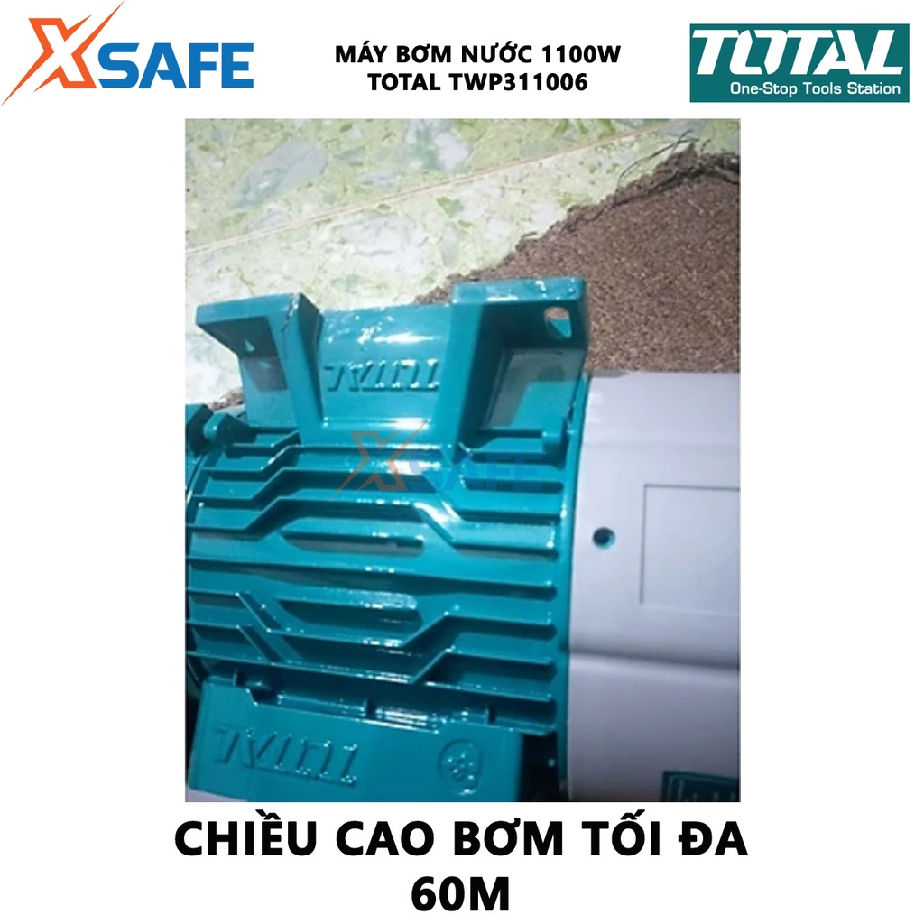 Máy bơm nước TOTAL TWP311006 Máy bơm mini công suất 1100W(1.5HP),hút sâu 9m, mô tơ dây đồng, cánh quạt đồng thau - XSAFE