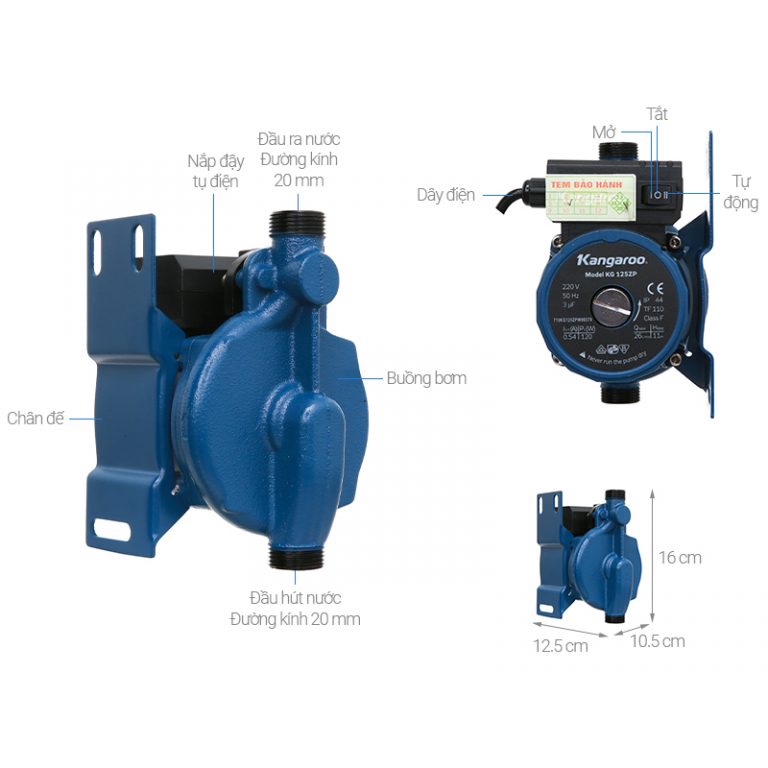 Nhà cửa & Đời sống > Dụng cụ & Thiết bị tiện ích > Máy bơm nước & phụ kiện || Máy bơm nước tuần hoàn Kangaroo KG125ZPCòn hàng