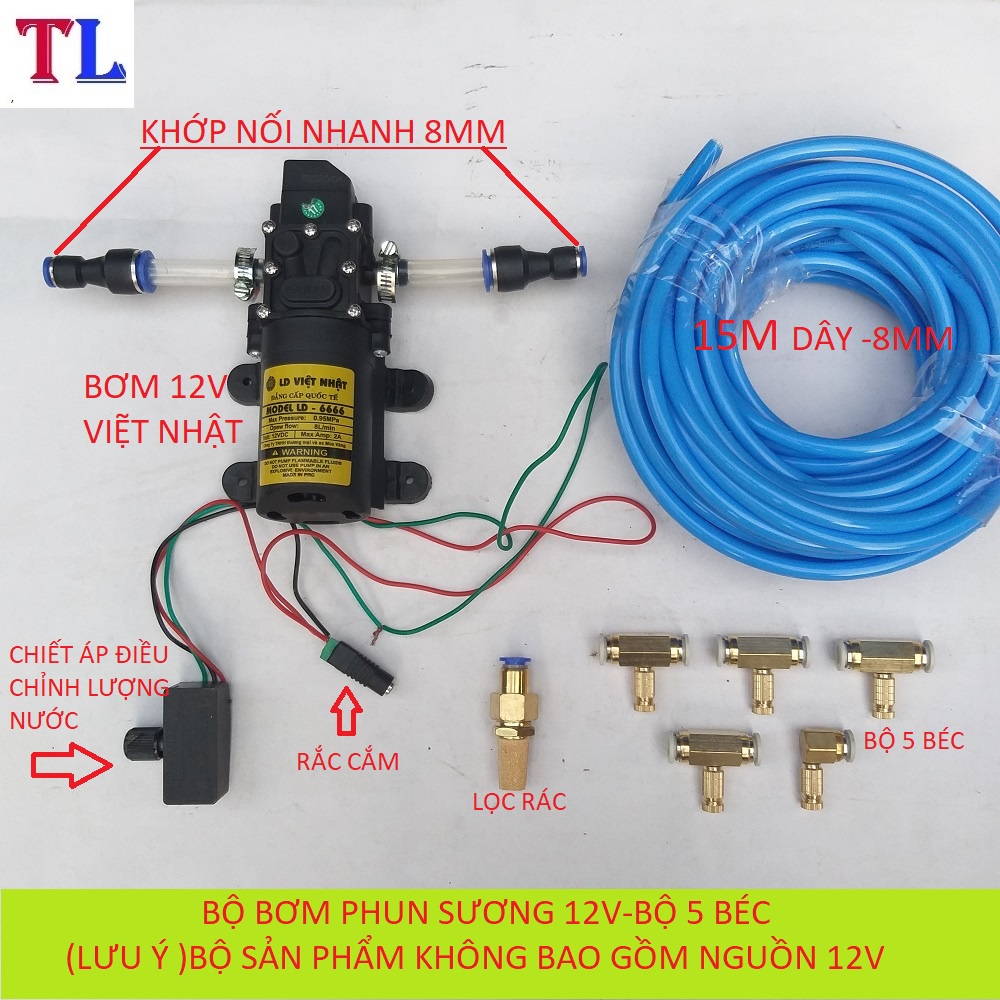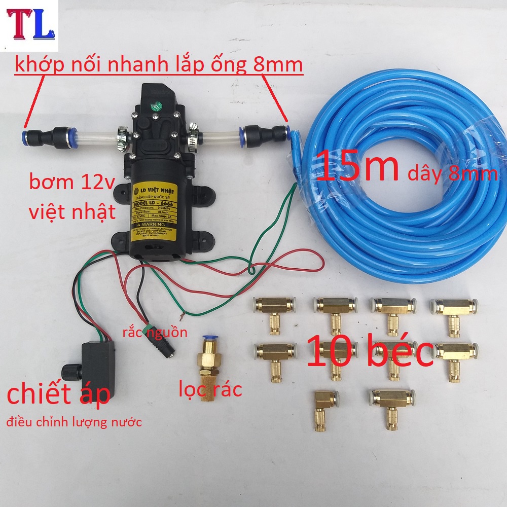 Bộ máy bơm phun sương ,tưới lan , làm mát 5 béc đến 30 béc , máy bơm mini 12v( bộ không nguồn)