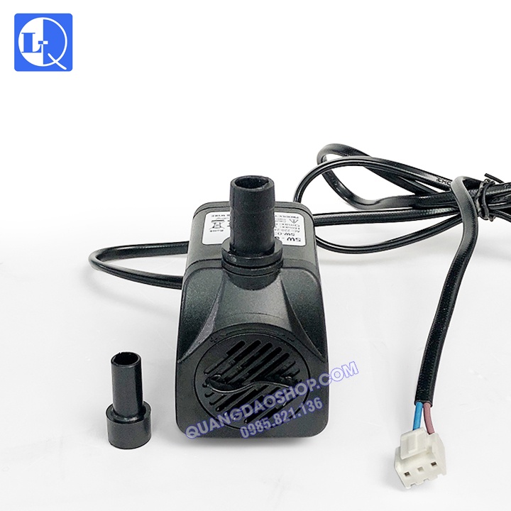 - Do bơm này thiết kế dùng cho quạt hơi nước nên dây nguồn của bơm có giắc cắm bo mạch, nêu AE dùng cho công việc khác như bơm dùng cho bể cá, bể thủy sinh, thác nước tiểu cảnh cảnh.... thì khi về AE phải đấu thêm phích cắm vào để cắm vào ổ điện nhé.