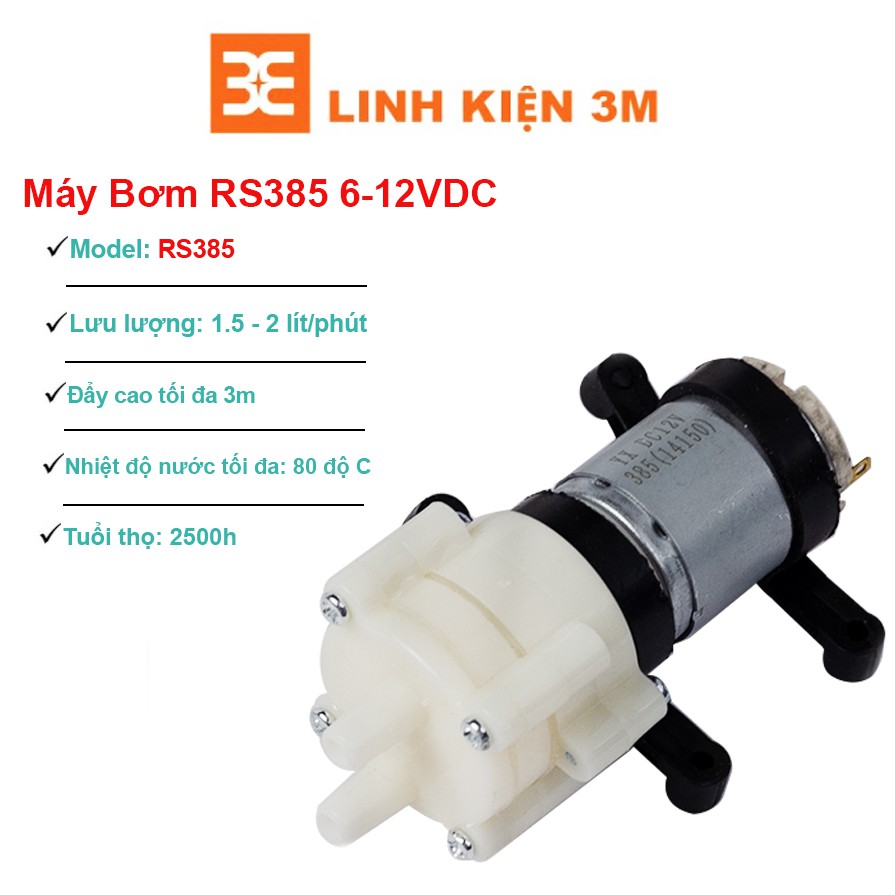 Nhà cửa & Đời sống > Dụng cụ & Thiết bị tiện ích > Máy bơm nước & phụ kiện || Máy Bơm RS385 6-12VDC 1.5-2L/MinCòn hàng