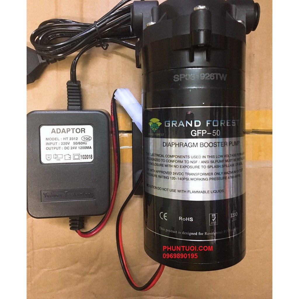 MÁY BƠM TĂNG ÁP 24V GFP-50 + NGUỒN 24V - BƠM PHUN SƯƠNG LÀM MÁT - TẠO ẨM KHÔNG KHÍ