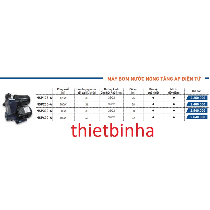 Nhà cửa & Đời sống > Dụng cụ & Thiết bị tiện ích > Máy bơm nước & phụ kiện || Máy bơm tăng áp điện tử Nanoco NSP128-A(128W), chịu nước nóngCòn hàng