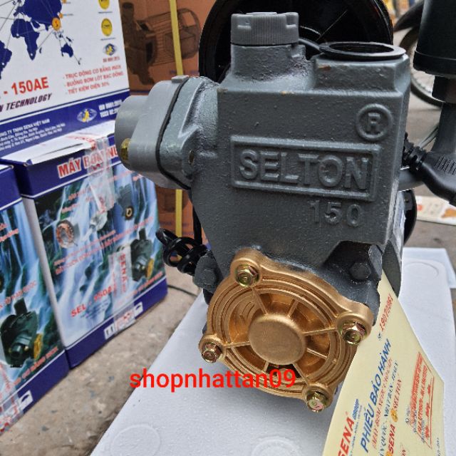 - Bơm tăng áp Selton 150AE được sản xuất và lắp ráp tại trong nước, áp dụng công nghệ hiện đại tới từ Hàn Quốc. Máy bơm Selton được hội doanh nghiệp bình chọn là hàng Việt Nam chất lượng cao, cùng với đó là chứng chỉ về chất lượng ISO 9001:2008