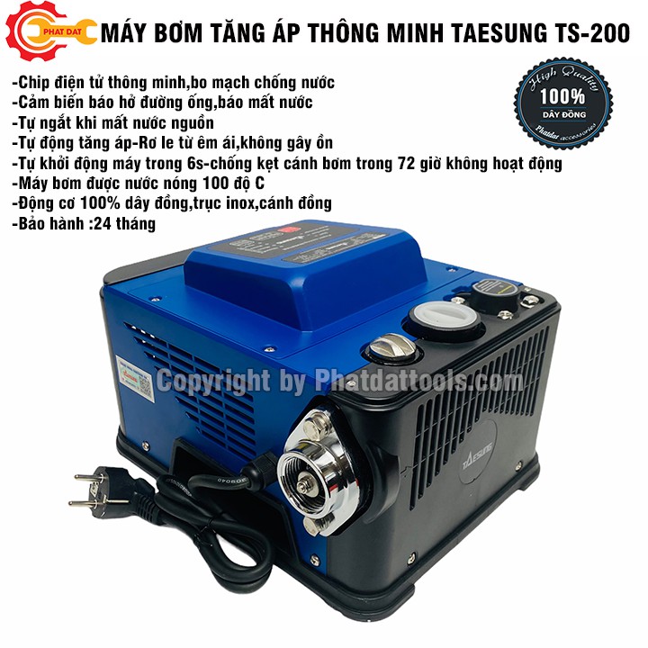 *Máy Bơm Tăng Áp Thông Minh TAESUNG TS-200A được đánh giá là một trong những dòng máy bơm thông minh nhất,hiện đại nhất trên thị trường hiện nay.Máy được sản xuất trên dây chuyền tiên tiến của tập đoàn máy bơm hàng đầu Trung Quốc TAESUNG.**Ứng dụng và tính năng nổi bật của Máy Bơm Tăng Áp Thông Minh TAESUNG TS-200A: