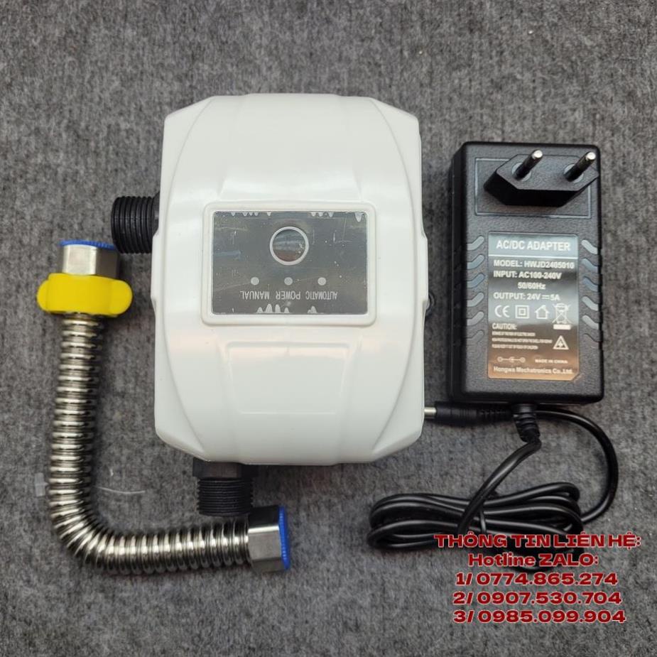 Bộ sản phẩm gồm: 1 bơm tăng áp 24VDC, 01 adaptor 24V, 1 co 2 đầu ren trong 21mm