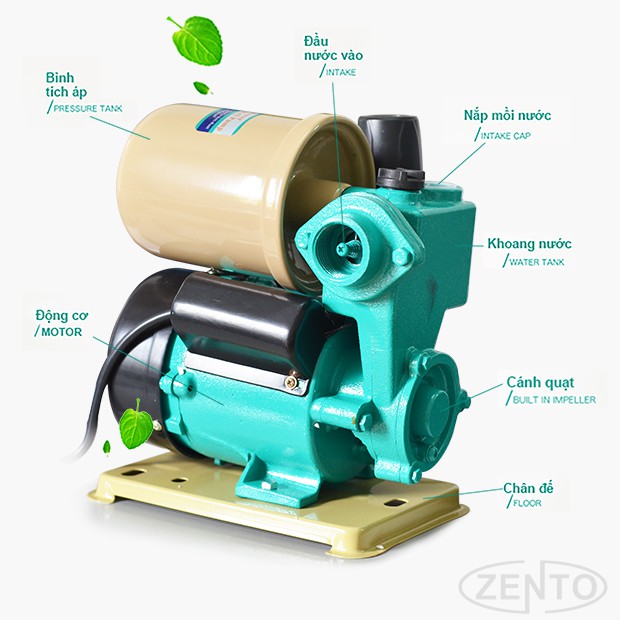 Giới thiệu Máy bơm tăng áp tự động có bình tích áp zento 370W