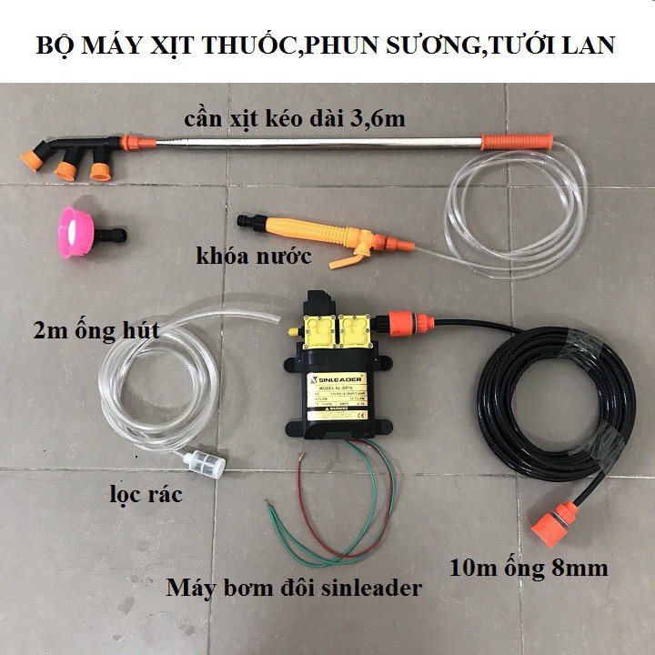 Máy Tưới Lan, Tưới Cây Cảnh - Máy Xịt Thuốc,Phun sương- Bộ máy bơm đôi mini 12v đa năng hàng Sinleader , có thể dùng để Tưới Lan,phun sương, tưới cây cảnh, tưới tiêu vườn rau, phun thuốc cây,rửa xe, phun thuốc khử trùng chuồng trại trăn nuôi..vv..