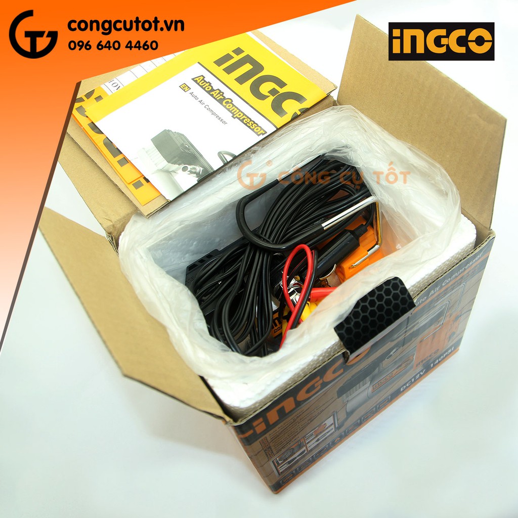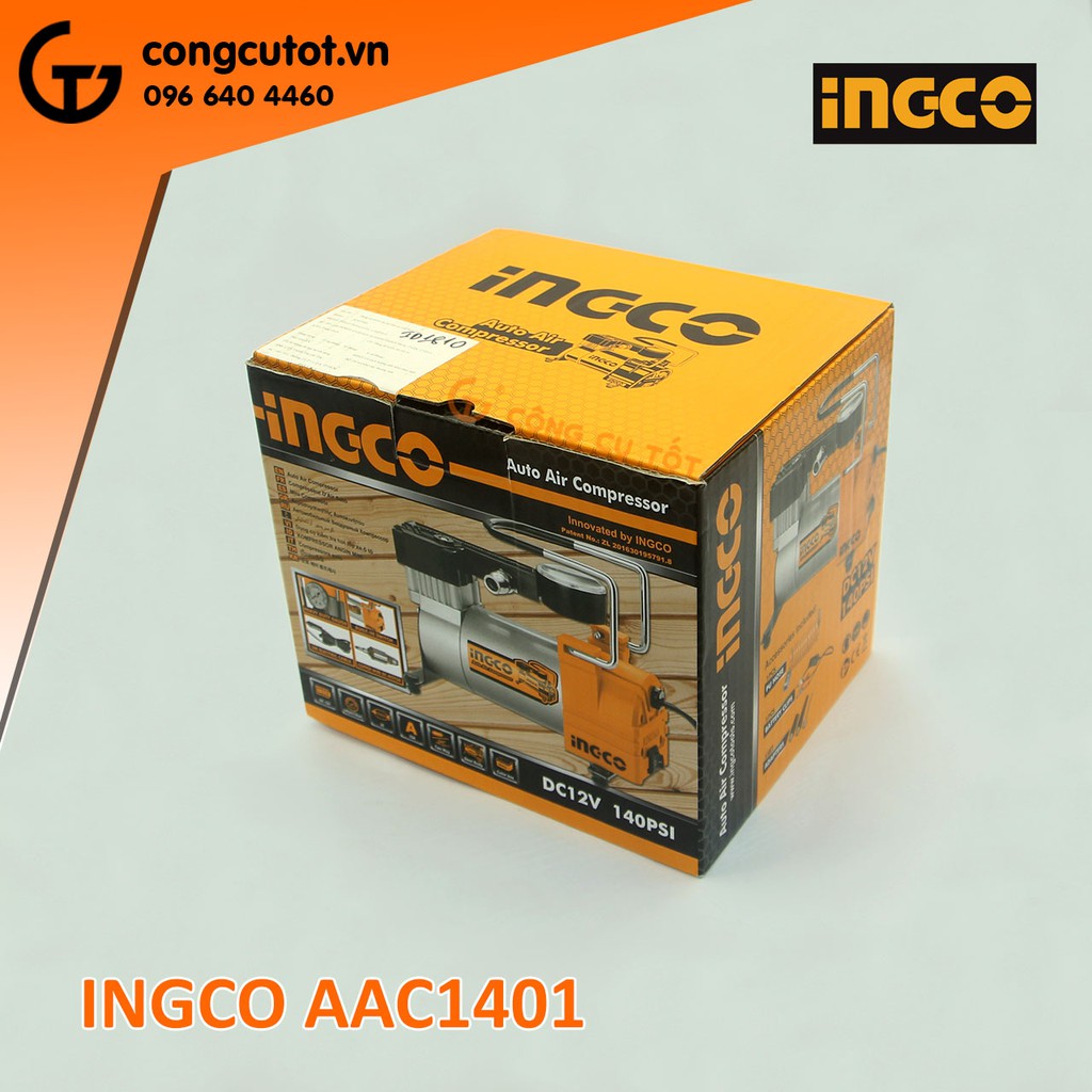 Máy bơm xe ô tô chạy ắc quy 12v 35 lít/phút áp lực 9.8kg/cm² Ingco AAC1401