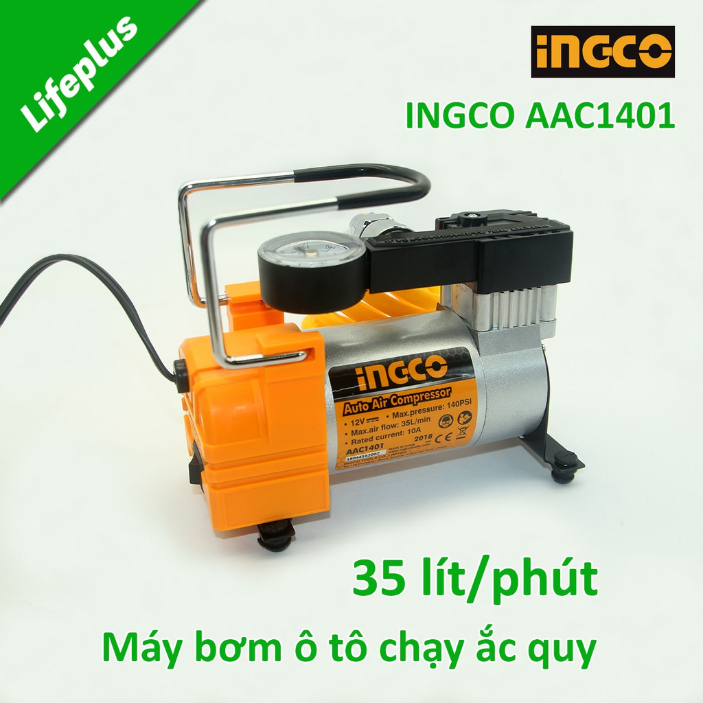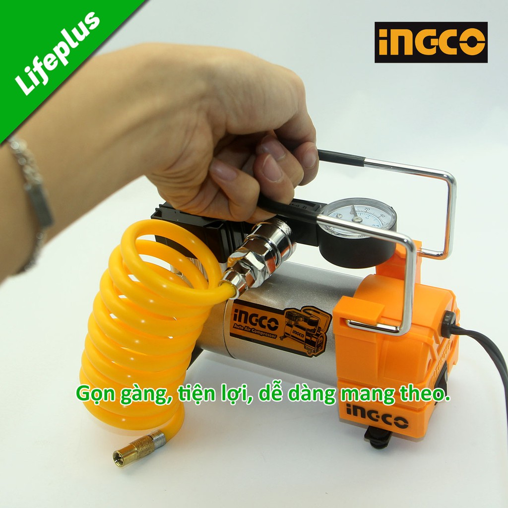 Máy bơm xe ô tô chạy ắc quy 12v 35 lít/phút áp lực 9.8kg/cm² Ingco AAC1401