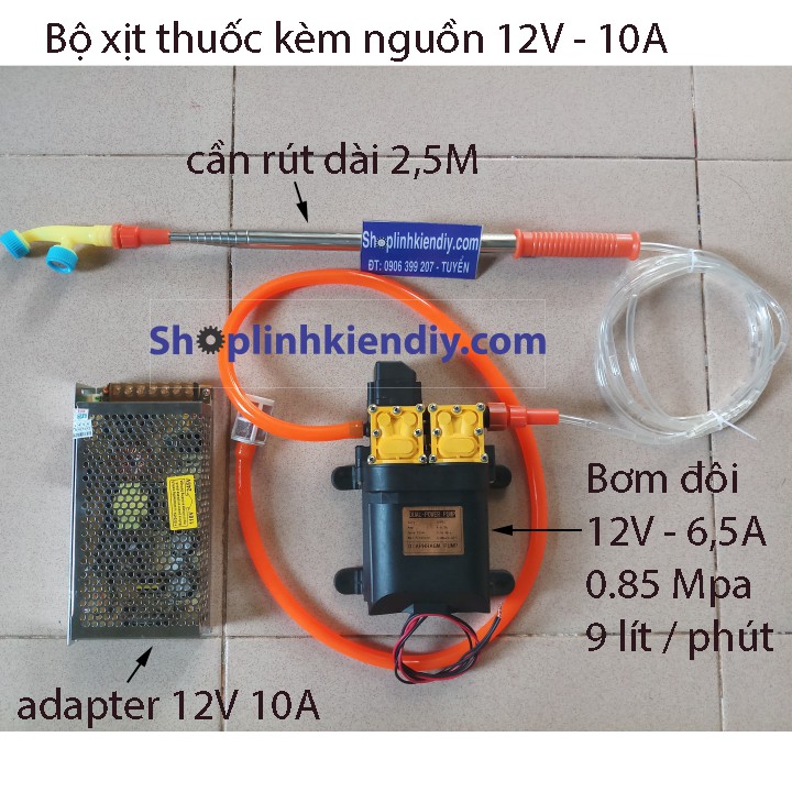 Bộ Sản Phẩm Bao Gồm Tất Cả Như Hình ( Bao Gồm máy bơm - adapter 12V 10A - vòi xịt )
