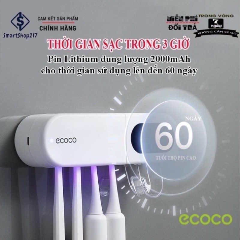 Nhà cửa & Đời sống > Đồ dùng phòng tắm > Kệ đựng bàn chải, kệ nhả kem đánh răng || Máy cắm bàn chải khử khuẩn bằng tia cực tím, kệ cắm bàn chải tiệt trùng Ecoco kèm nhả kem đánh răng hàng cao cấpCòn hàng