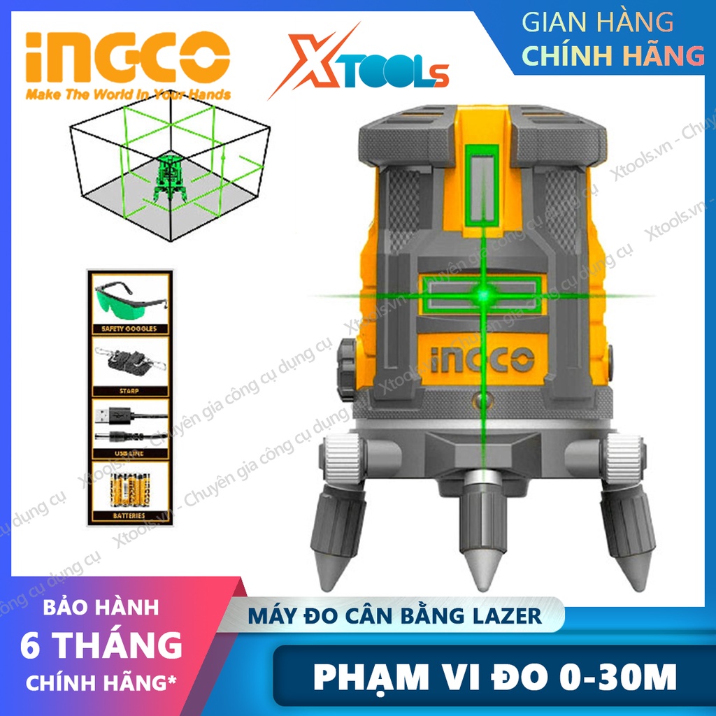 Nhà cửa & Đời sống > Dụng cụ & Thiết bị tiện ích > Dụng cụ > Dụng cụ đo lường || Máy cân bằng bắn cốt tia lazer INGCO HLL305205 máy laser cân mực 5 tia xanh, đo mức cân bằng, phạm vị làm việc 0-30mCòn hàng