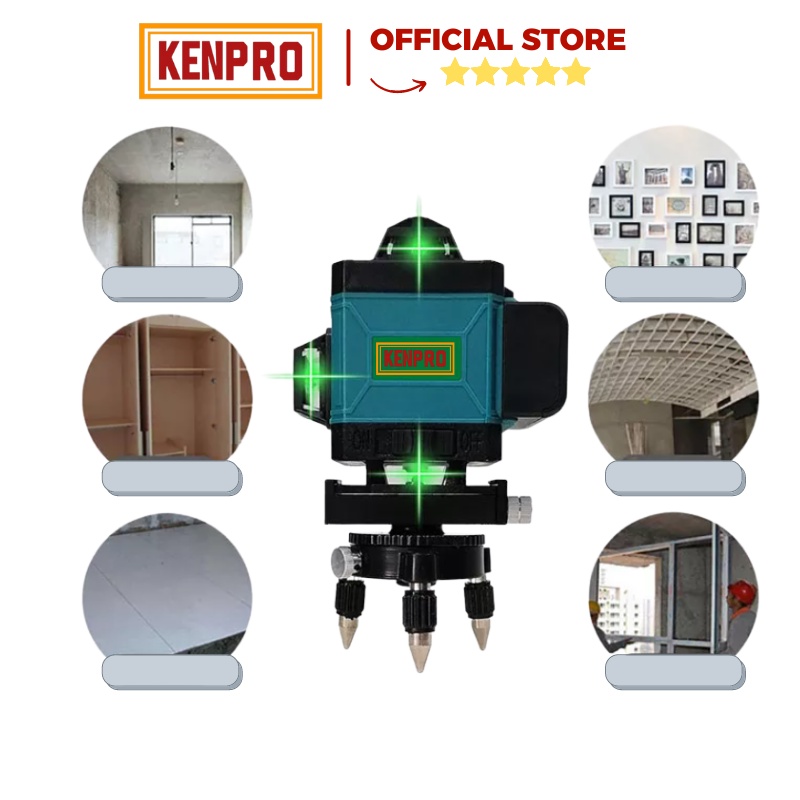 ỨNG DỤNGMáy Cân Bằng Laser KenPro 12 Tia Xanh hay còn gọi là máy cân mực Laser là thiết bị phát ra các chùm laser ngang dọc xác định các điểm cân bằng, các đường thẳng, đường ngang, vuông góc một cách chính xác.