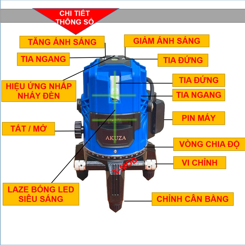 Nhà cửa & Đời sống > Dụng cụ & Thiết bị tiện ích > Dụng cụ > Dụng cụ đo lường || Máy cân bằng laze | máy cân bằng laze 5 tia AKUZA siêu sáng | bảo hành chính hãng 1 nămCòn hàng