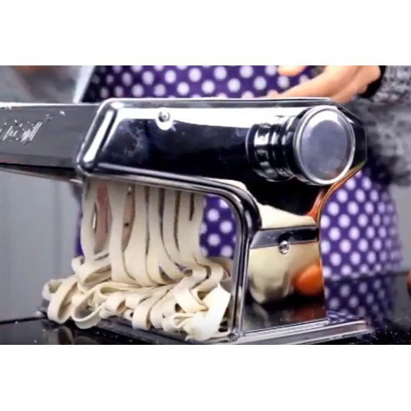 Với máy cán mì 3 lưỡi, bạn sẽ 3 loại lưỡi cắt: 2mm là lưỡi cắt cho ra sợi mì thông thường, 5mm cho ra sợi mì spahgeti, 9mm cho ra sợi mì dẹt to đặc biệt. Bạn chỉ cần cho miếng bột đã cán vào lưỡi cắt tương ứng, một tay quay trục xoay, một tay đỡ sợi mì được cắt ra phía dưới.