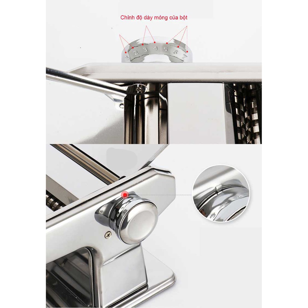 + Toàn bộ máy được làm từ thép không gỉ, đảm bảo an toàn vệ sinh cho thành phẩm mì, đồng thời cấu tạo thông minh với 1 đầu cán kết hợp cùng 3 lưỡi cắt sẽ giúp bạn thực hiện nhuần nhuyễn và thuận tiện từ việc cán mỏng cho đến cắt thành mì.