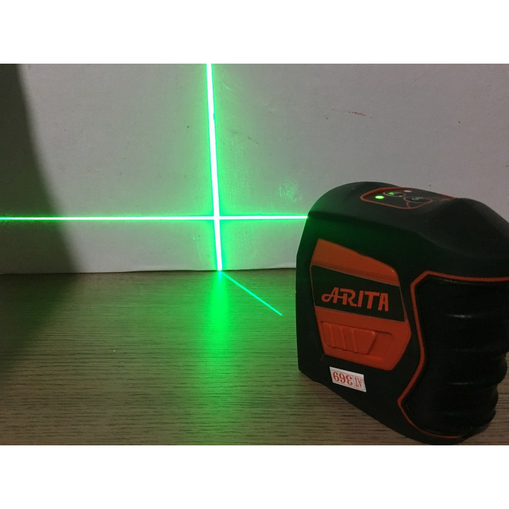 ► Máy cân bằng tia Laser xanh ARITA ..phát ra 1 tia đứng, 1 tia ngang Phạm vi hoạt động trong nhà, ngoài trời. Máy được thiết kế chuyên biệt để kiểm tra độ thẳng đứng và mặt ngang. Thiết bị có dùng 3 pin AA.