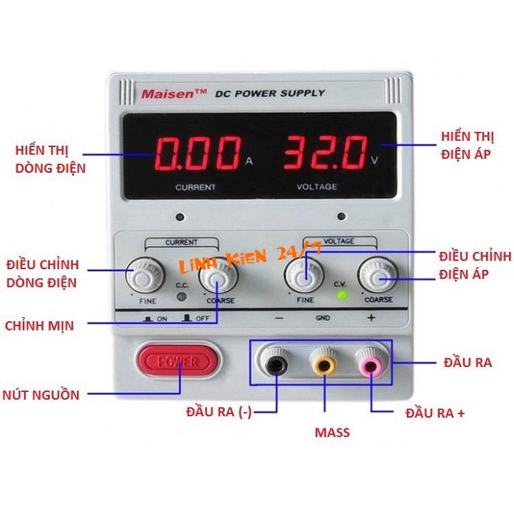 - Điện áp ra điều chỉnh: 0 - 30V DC.