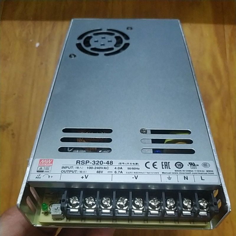 Máy cấp nguồn bán ra bao gồm mạch mới + vỏ mới + Nguồn Meawell 48V-350W chỉnh lên 58V hàng cũ tháo máy.
