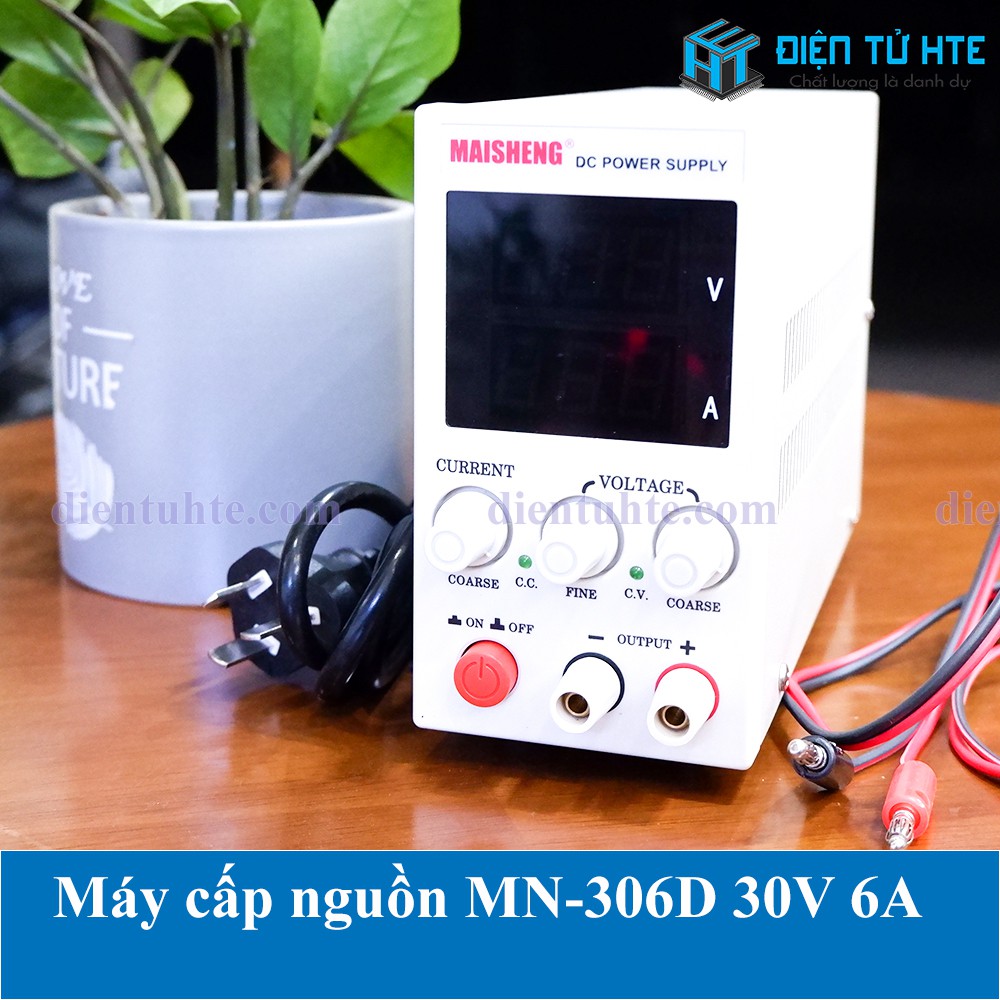 Máy cấp nguồn DC 30V 6A MN-306D điều chỉnh 0-30V 0-6AMN-306D có thiết kế nhỏ gọn, hiển thị màn hình LED 7 đoạn to và rõ ràng. Với độ phân giải hiển thị 3 số thích hợp để cấp nguồn sửa chữa cho nhiều thiết bị điện tử.