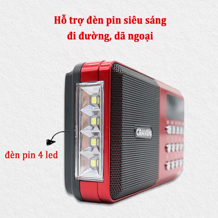 MÁY caraven CR65 nghe đài FM hỗ trợ khe cắm thẻ nhớ ,CỔNG CẮM USB,CÓ ĐÈN PIN SIÊU SÁNG