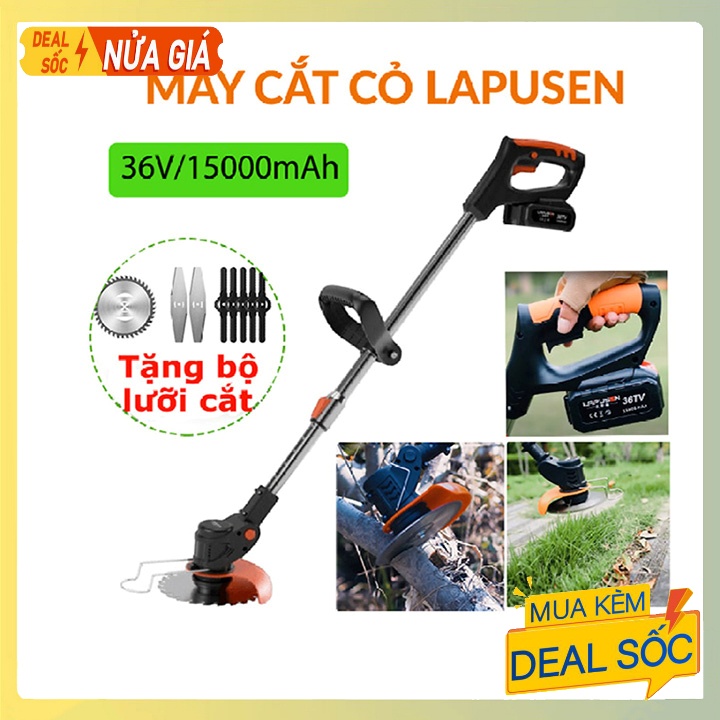 Nhà cửa & Đời sống > Làm vườn > Máy cắt cỏ, dụng cụ cắt cỏ || May cắt cỏ cầm tay dùng pin 36v Lapusen Kèm 2Pin 8 lưỡi cắtCòn hàng