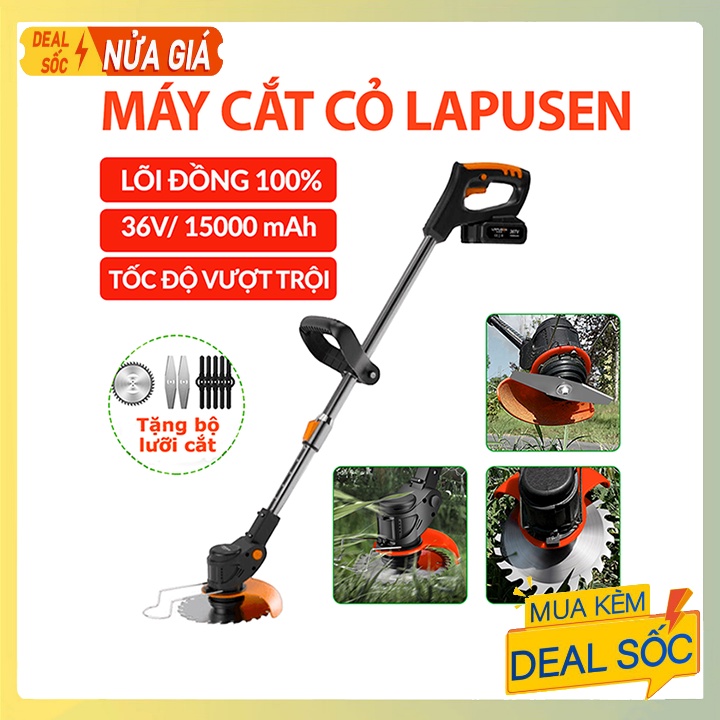 Máy cắt cỏ cầm tay LAPUSEN, Máy tỉa cành đa năng nhỏ gọn, 2 pin khủng 15 cell, Tặng kèm 8 lưỡi