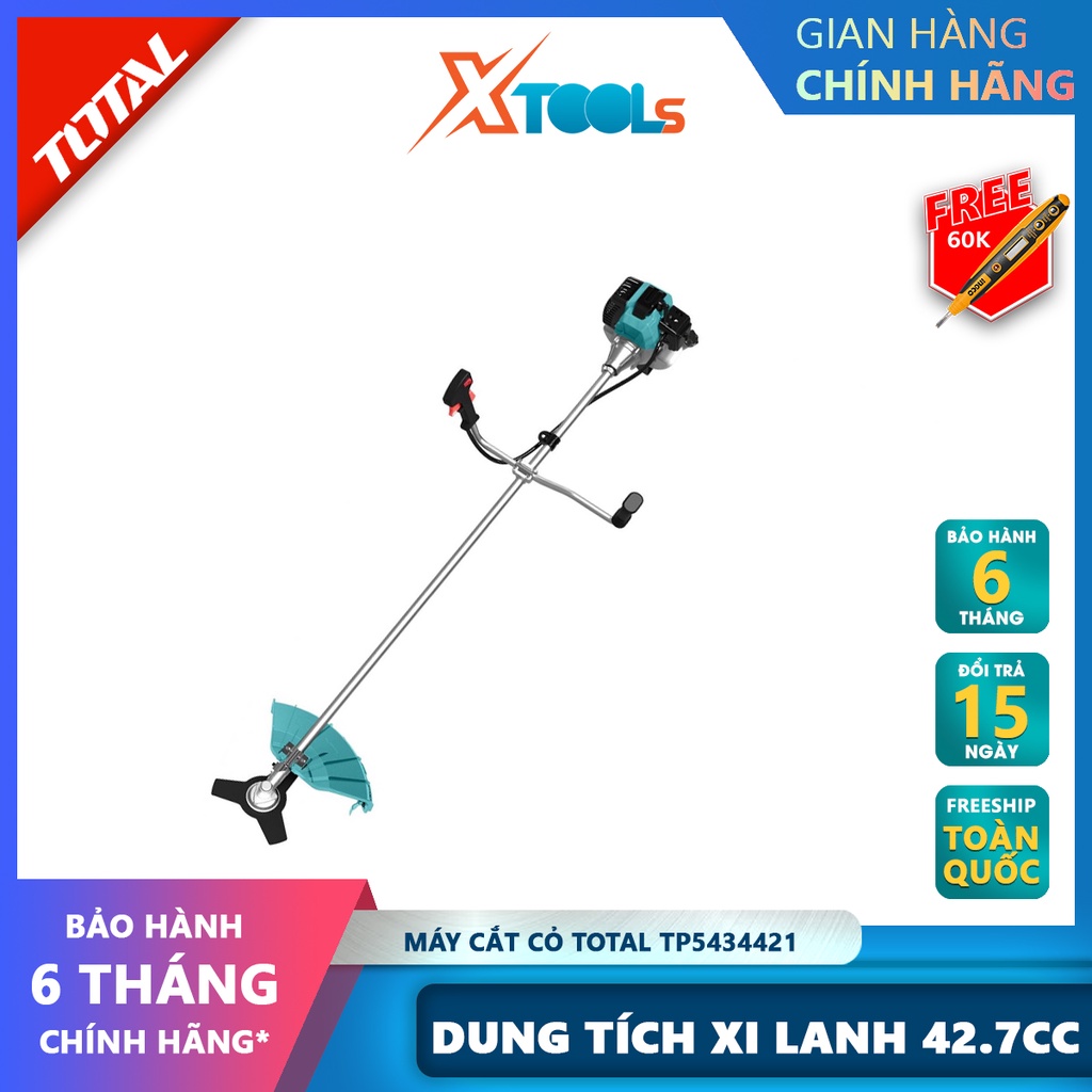 Máy cắt cỏ dùng xăng TOTAL TP5434421 máy cắt cỏ có dung tích xi lanh 42.7 cc, Công suất tiêu thụ 1.25Kw(2HP), 9000v/p