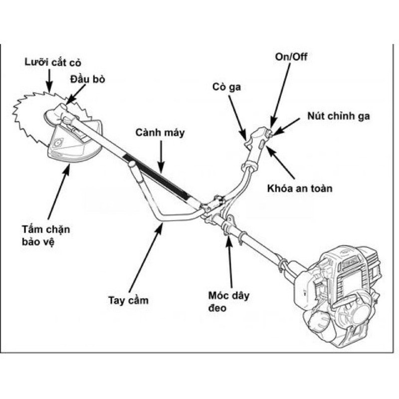 + Bộ sản phẩm gồm: 01 cần, 01 mô tơ, 01 bình pha xăng, 01 lưỡi cắt cỏ + chắn cỏ, bịch phụ tùng, 01 phiếu BH.
