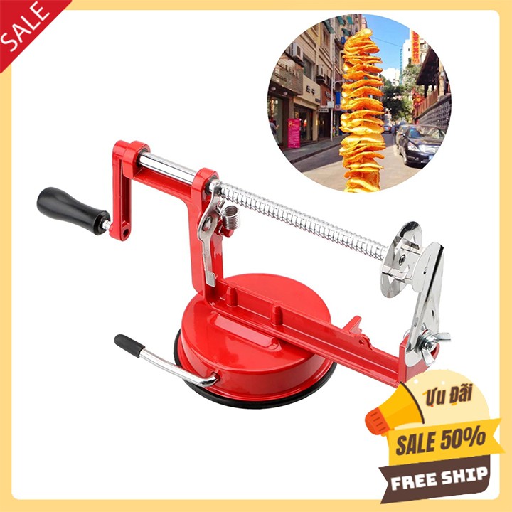 - Máy khoai tây lốc xoáy còn được gọi là máy cắt khoai tây xoắn vòng. Tháo lắp dễ dàng, kích thước nhỏ nhẹ, dễ vận chuyển và sử dụng