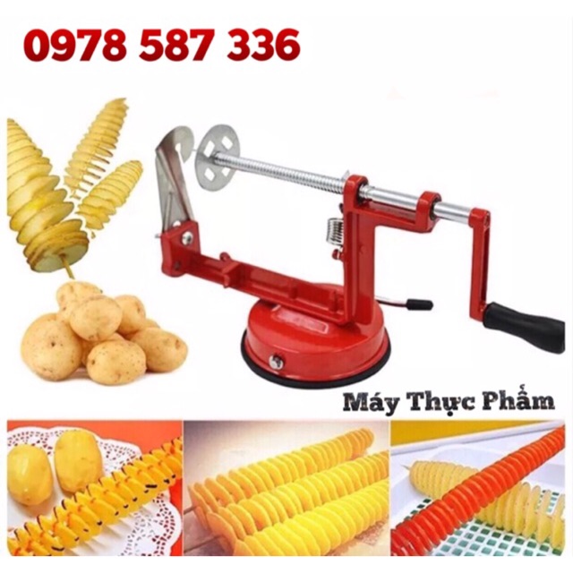 Máy khoai tây lốc xoáy còn được gọi là máy cắt khoai tây xoắn vòng. Tháo lắp dễ dàng, kích thước nhỏ nhẹ, dễ vận chuyển và sử dụng