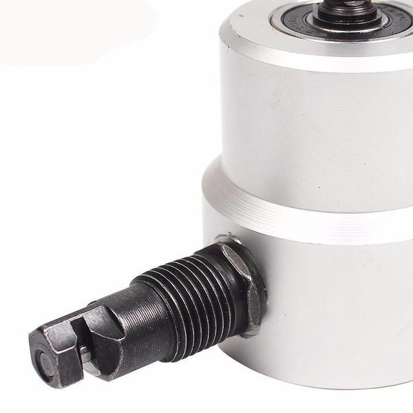 Máy cắt kim khí với hai đầu cắt là phụ kiện gắn vào máy khoan cầm tay, sử dụng để cắt các tấm kim loại, tấm sắt hay tấm nhựa, tấm alu. Máy cắt kim loại với thể thay thế hoàn toàn mẫu máy cắt câm tay của bạn. Bạn chỉ cần dùng 1 cái máy khoan cầm tay mà không cần tới máy cắt sắt nữa, chỉ cần gắn bộ đũa cắt vào máy khoan.Máy cắt kim loại sở hữu 2 đầu cắt sở hữu thể cắt được rộng rãi cái nguyên liệu dạng tấm như sắt, kim khí, nhựa, tấm alu, tấm nhôm, tấm inox vời bề dày tối đa là 2mm.