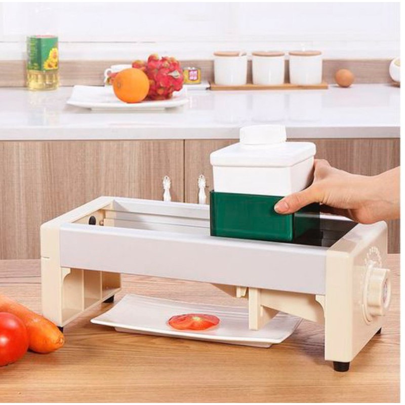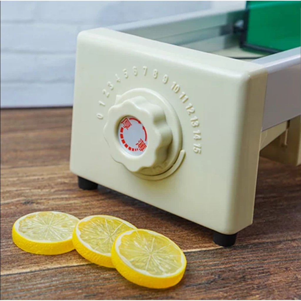 + Đa chức năng: 12 chế độ điều chỉnh, cho phép bạn cắt lát thành 1mm-10mm, phù hợp cho cả trái cây và rau quả