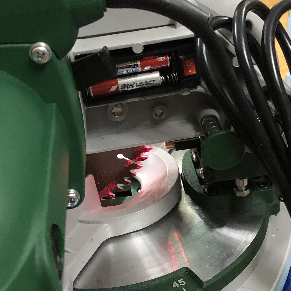 - MÁY CẮT NHÔM DEKTON DK-210 được trang bị đèn laser siêu nét sử dụng pin tiểu giúp căn chỉnh độ chính xác của đường cắt và thay thế khi hết pin trong quá trình sử dụng.