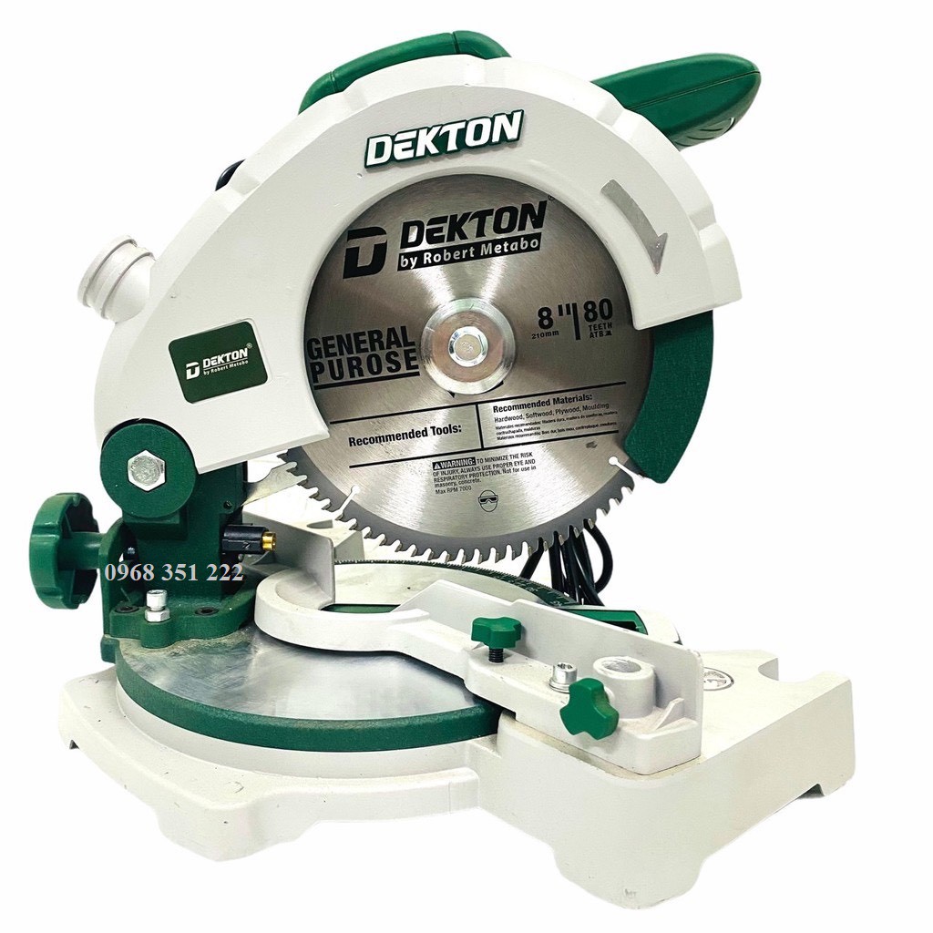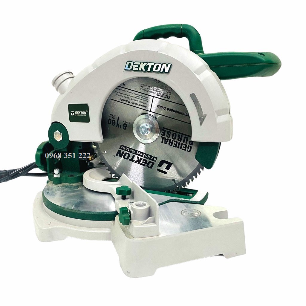 Máy cắt nhôm để bàn mini lưỡi 210mm Dekton, Model: DK-210 được thiết kế với màu xanh quân đội mạnh mẽ cùng công suất cao 1500w, nghiêng đa góc kèm đèn laze thích hợp hỗ trợ cưa, cắt chính xác và hiệu quả cao tiết kiệm thời gian công sức cùng sự an toàn tuyệt đối với bộ bảo vệ lưỡi thông minh tránh mất tầm nhìn của người sử dụng.