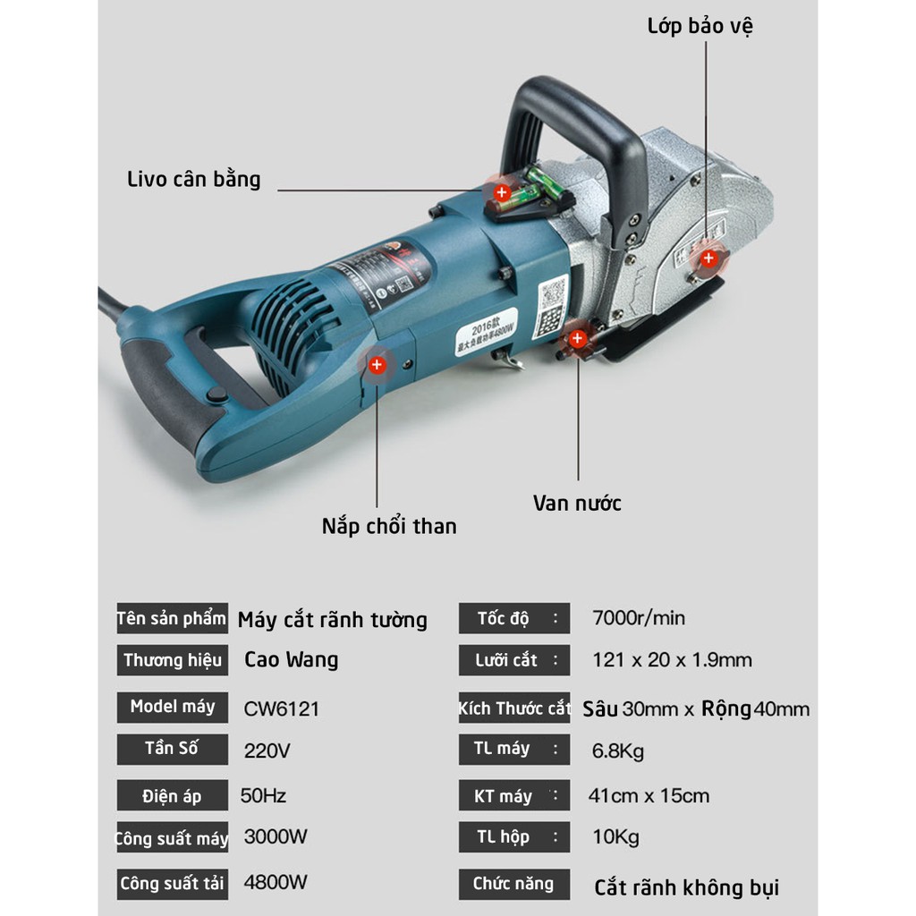 ✨Hiện nay mẫu máy cắt rãnh tường bán chạy nhất và tốt nhất thị trường là mẫu máy Caowang CW6121 có mã tương ứng là ZR3928 sử dụng lưỡi cắt 121mm máy này được tin dùng vì sự bền bỉ, ổn định và động cơ có cơ cấu khởi động mềm cực êm, giúp máy chạy mà không bị giật, sau khoảng 2 giây máy đạt công suất tối đa, bộ khởi động mềm nhập khẩu từ Nhật Bản, máy có chỉ số chống giật điện, an toàn cho người sử dụng, động cơ máy hoạt động bền bỉ, và có tiếng ồn thấp nhất✨Máy cắt rãnh tường 5 lưỡi CAOWANG ZR-3928 là phiên bản kế nhiệm của model CaoWang ZR 3836, thừa hưởng mọi ưu điểm về tuổi thọ, độ bền và khả năng cắt chính xác, lại được trang bị thêm nhiều tính năng mới giúp dễ căn chỉnh khi làm việc như: Có Livo cân bằng máy.