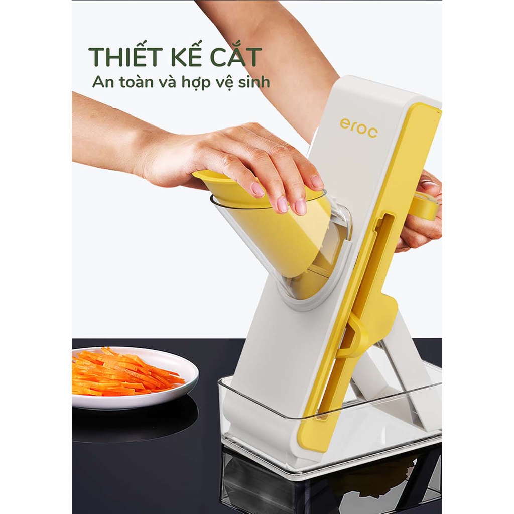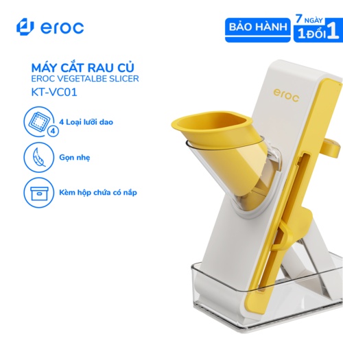Máy Cắt Rau Củ Kèm Bộ Lưỡi Cắt Đa Năng Có Hộp Nắp Đậy Chứa Rau Củ Eroc VEGETALBE SLICER V-KT-VC01 - Hàng Chính Hãng