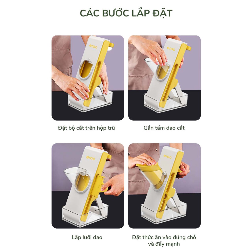 Giới thiệu Máy Cắt Rau Củ Kèm Bộ Lưỡi Cắt Đa Năng Có Hộp Nắp Đậy Chứa Rau Củ Eroc VEGETALBE SLICER V-KT-VC01 - Hàng Chính Hãng